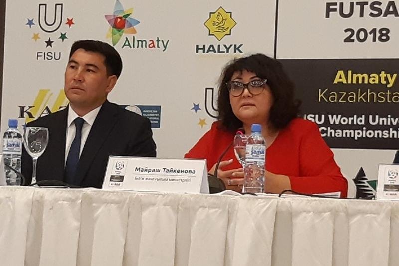 19-26 тамыз күндері Алматыда болатын Футзалдан студенттер арасындағы әлем біріншілігі алдында өткен баспасөз мәслихатында ол білім беру мекемелеріндегі спорт секциясының жұмыстарына тоқталды. «Типтік оқу жоспарында дене шынықтыру сабағы аптасына 3 рет белгіленген. Қазір министр сабақтың 1/3 бөлігі сайыс түрінде өткенін жөн көріп отыр. Яғни, оқушылар мемлекеттік стандартқа сәйкес физикалық даму жаттығуларын ғана жасамайды, жарыс түріне өтеді. Мектеп әкімшілігі қандай спорт түрін дамытамын десе де өз еріктері. Егер ол мектепке футбол қызықты болса соны, хоккей десе хоккейді қалдырсын», – деді Майраш Тайкенова. Қазіргі білім беру жүйесінде білім мекемелеріне спорттың кез-келген бағытын таңдауына жаңдай жасалған. «Бұдан бөлек колледж студенттері де спортқа ден қойып келеді. Жарыстар мен футбол лигасы бар. Шахмат ойыны дамып жатыр. Астанада кез-келген мектепте шахмат секциясы бар. Футболдан Ұлттық студенттер лигасы спортсүйер жастардың шоғырын жинауда», – деді Майраш Тәйкенова.