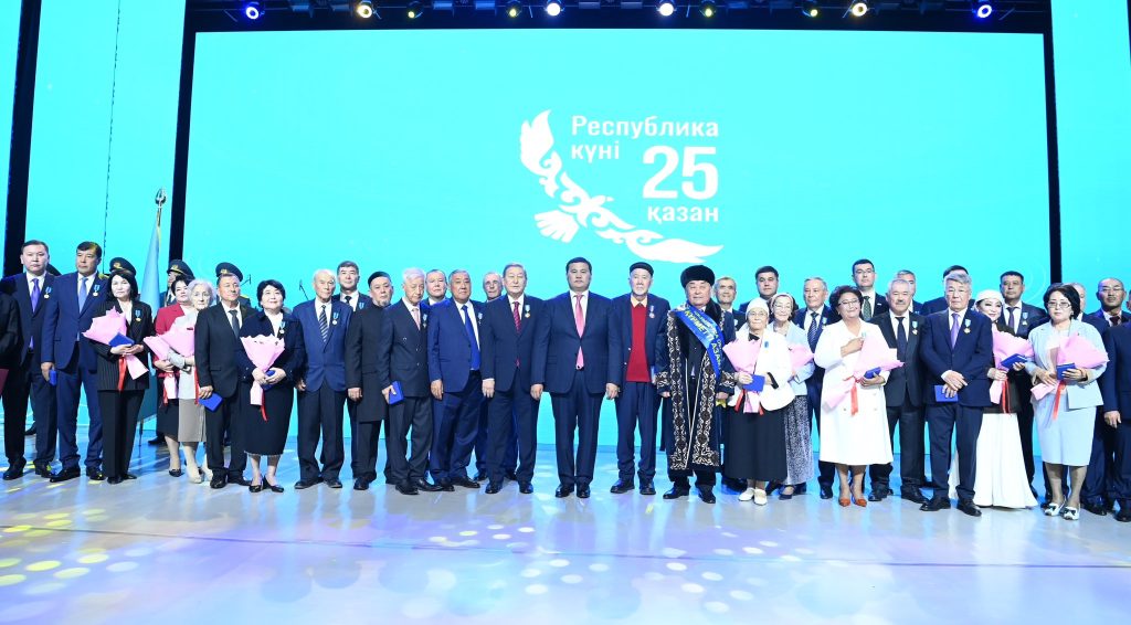 Мерекелік іс-шарада Президент Қасым-Жомарт Кемелұлы Тоқаевтың Жарлығына сәйкес Қазақстан Республикасының әлеуметтік-гуманитарлық дамуындағы аса үздік жетістіктері, белсенді қоғамдық қызметі, мемлекеттік және қоғамдық қызметтегі сіңірген еңбегі, халықтар арасындағы достық пен ынтымақтастықты нығайтуға қосқан елеулі үлесі үшін бірқатар азаматқа мемлекеттік наградалар табысталды.