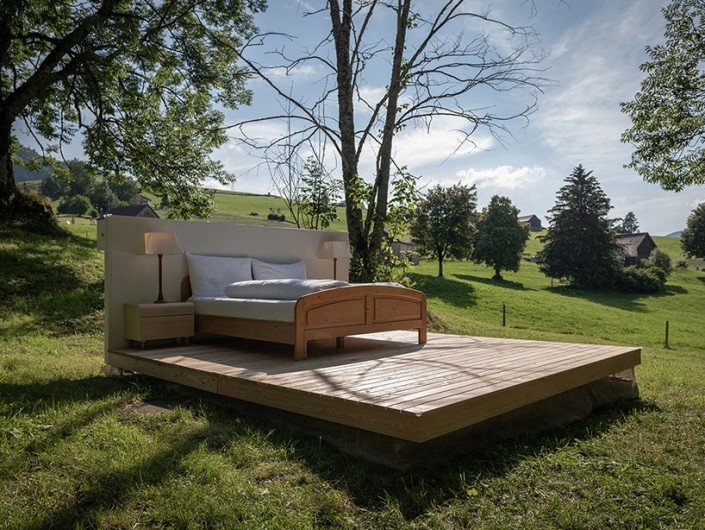 Швейцарияның Тоггенбург округінде шатыры мен қабырғасы жоқ қонақ үй ашылды. Мұндай ерекше қонақүйдің бір түніне 103 мың теңге төлейсіз, – деп хабарлайды Design Boom.