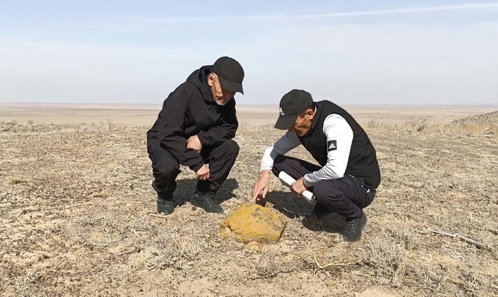 2) Сол тасты қарап отырған Әзірбек Ілиясбекұлы мен Шегебай Құндақбайұлы.