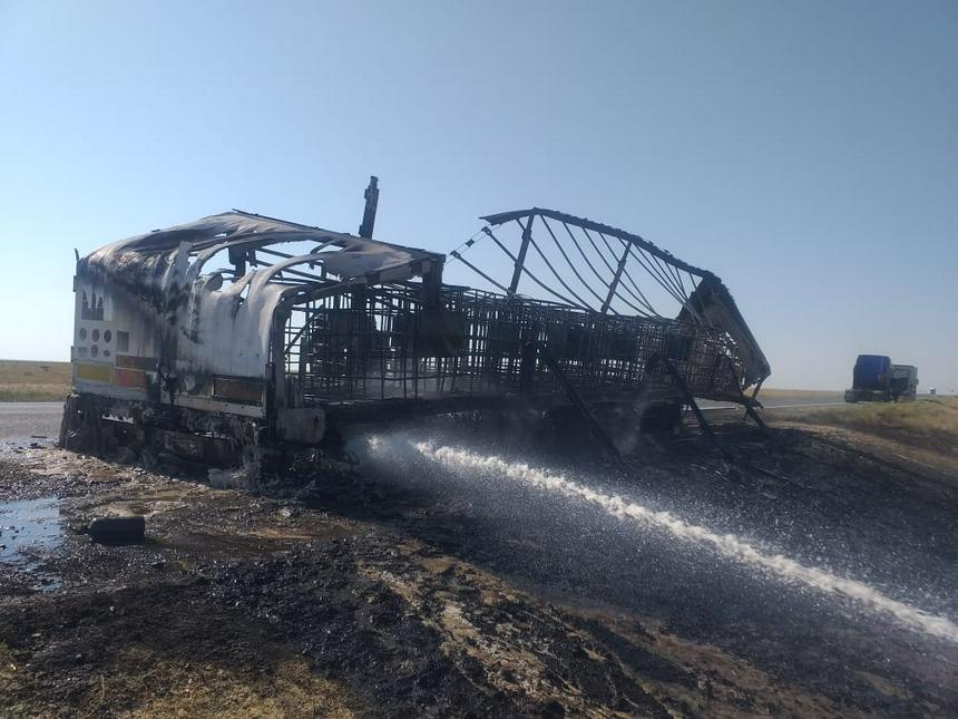 Қызылорда облысында сұйық зат тиелген шетелдік жүк көлігі өртеніп кетті, деп хабарлайды ҚазАқпарат тілшісі.
