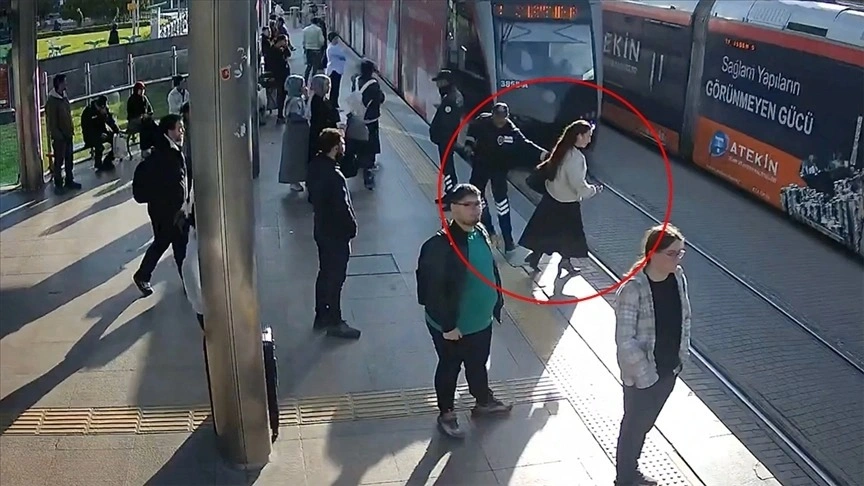 Кайсери қалалық муниципалитеті көлік басқармасының әлеуметтік медиа аккаунтында жарияланған видеодан трамвай вокзалға жақындап келе жатқанда әйелдің рельске қарай өтіп бара жатқанын және сары жолақтарды тексеріп жүрген күзетшінің әйелді байқап қалғанын көруге болады.