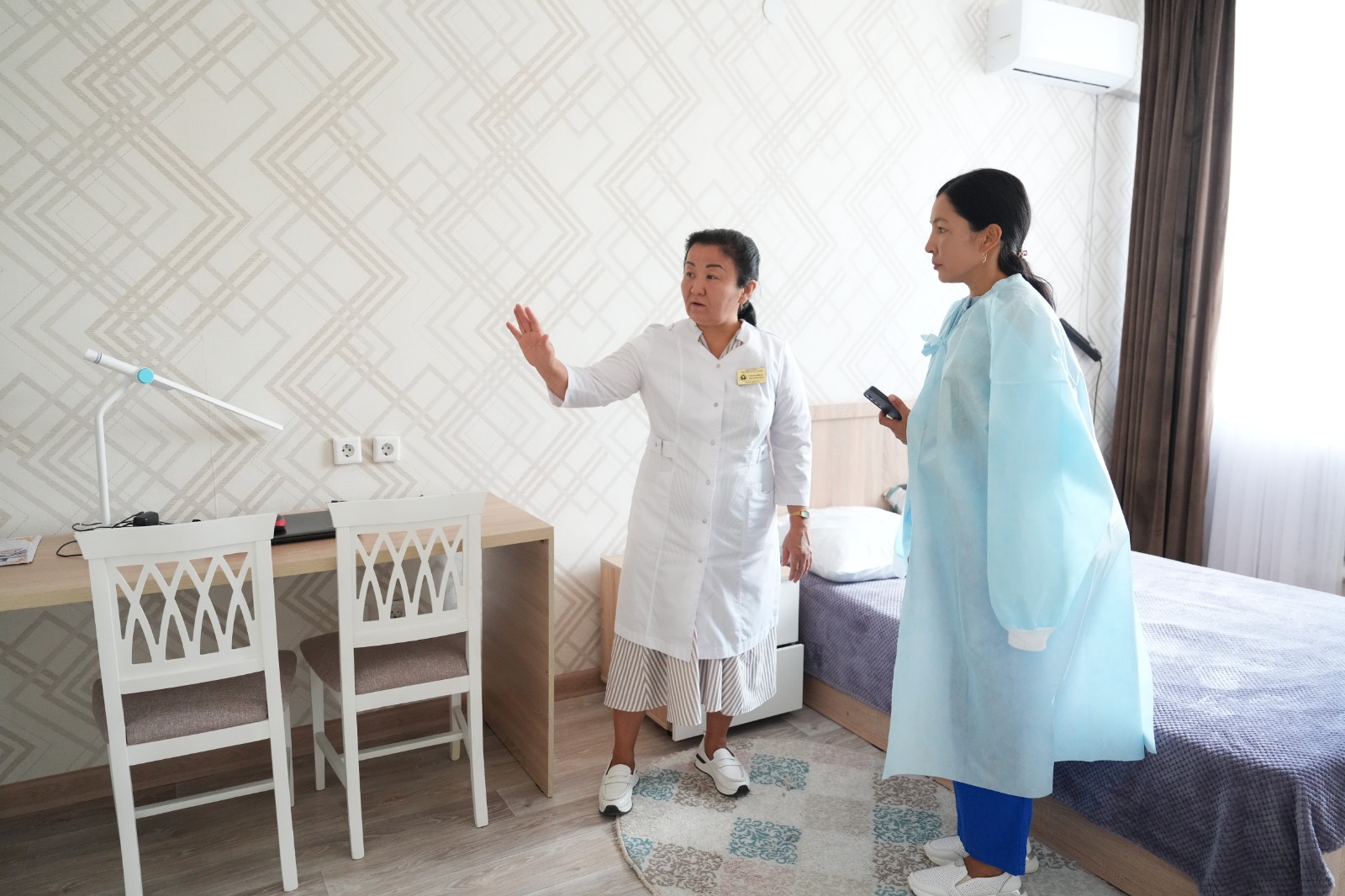 Бізді қарсы алған мекеме директоры Манат Бектемірқызы жұмыс барысымен таныстырды. Кірген бойда әрбір ем алушымен, қызметкермен кездесіп, күнделікті хал-жағдайларын сұрауды әдетке айналдырған. «Бір ауыз сөз жанды жадыратады» демекші, емделушілерге ең керегі де сол. Көбімен бұрыннан таныс секілді емін-еркін сөйлесіп жатты.