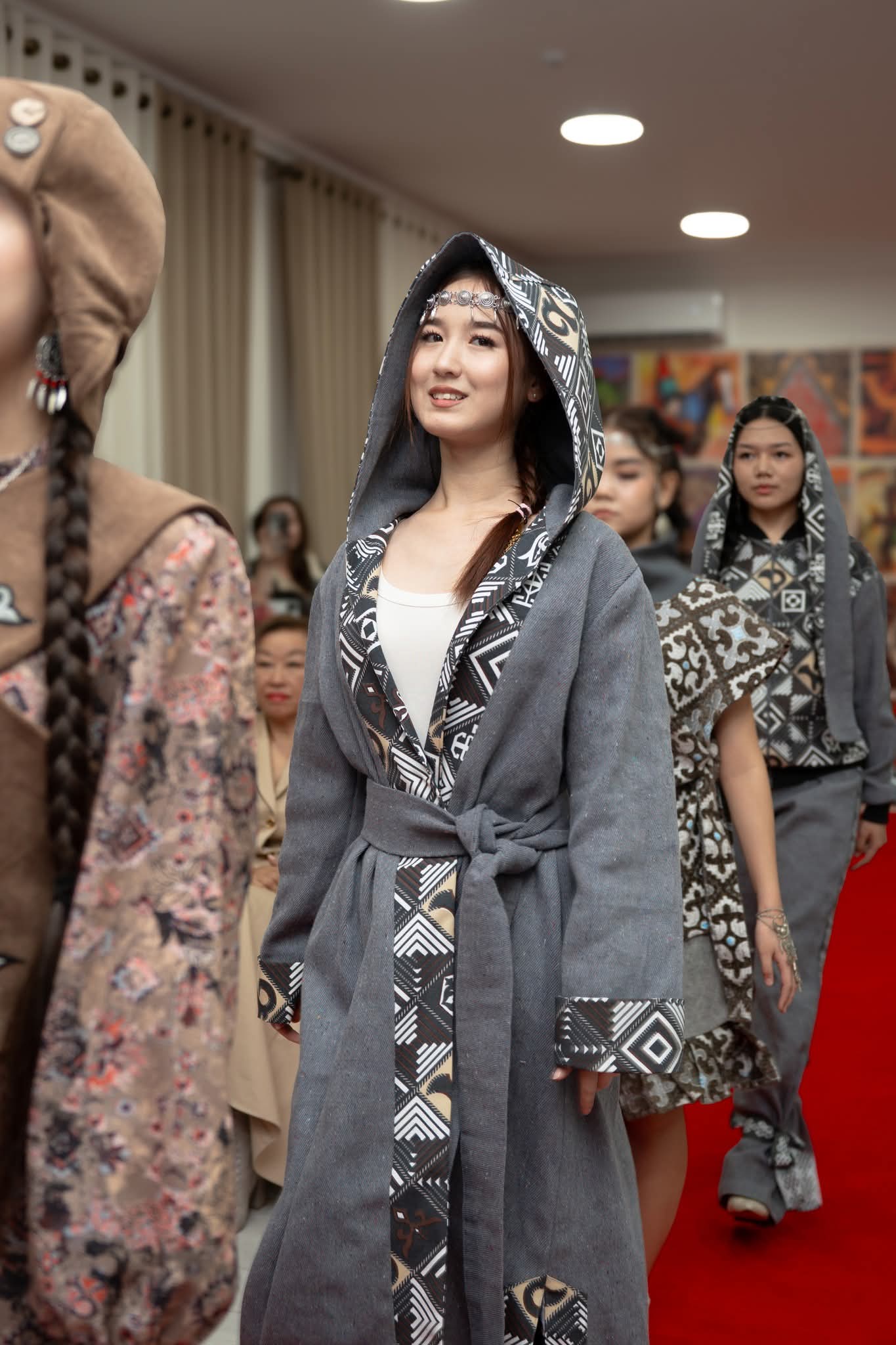 – Біз ұлттық эстетиканы жаңа көзқараспен ұсынуды ойладық. Мысалы, күрделі ою емес, сызықпен берілген философия. Осы ретте нәзік штрихтар, минималист форма, кеңсеге де, ресми кездесулерге де жарасатын үйлесімді киім үлгілерін әзірледік. Бір сөзбен айтқанда, «Мұра сызығы» топтамасының мағынасы: дәстүрді мойындау, қарапайымдылықты бағалау, стиль арқылы өз түбіріңді сезіну. Әр киім арнайы тігіліп, өрнектері қолдан салынған және әр түйме, сырға, сақина, брошкалар да қолдан киімге сай үйлесіммен, балшық пен смоладан жасалған.