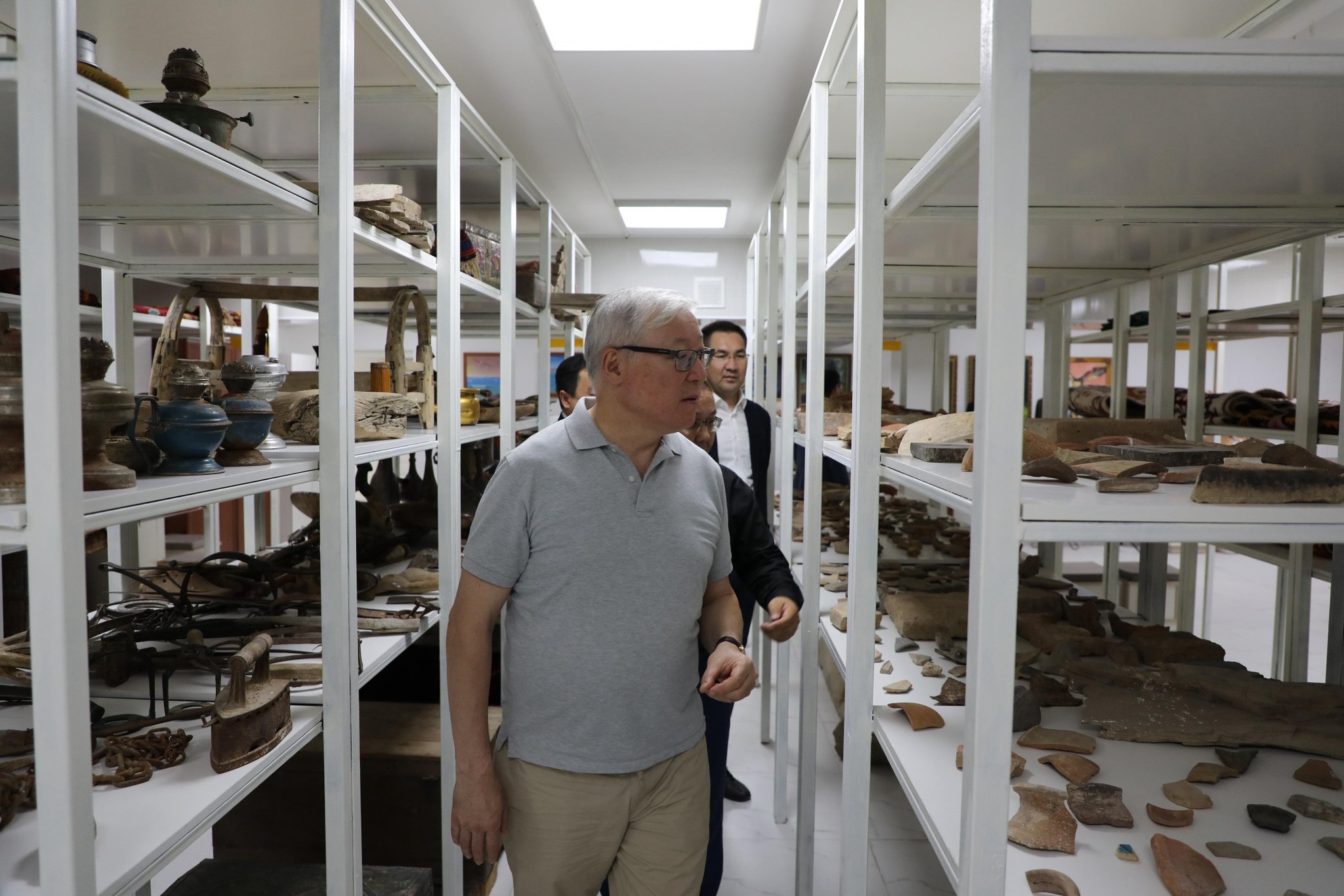 Орталықта орналасқан аудандық музейдің экспозициялық залдарын аралап көріп, ондағы құнды жәдігерлер мен өңір тарихына қатысты деректерге ерекше назар аударды.