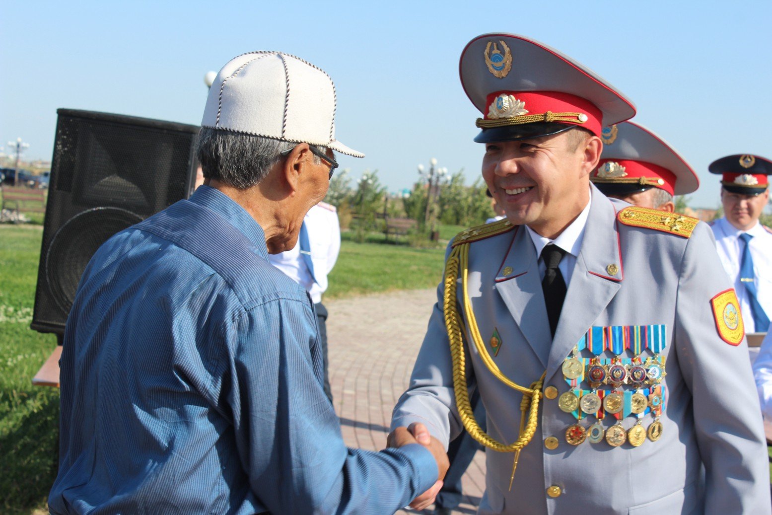 Ішкі істер органы ардагерлерінің атынан Әлиев Төлеш полицейлерді құттықтап, азаматтық борыштарын абыроймен атқаруларына тілектестік білдіріп, ыстық ықыласын жеткізді.