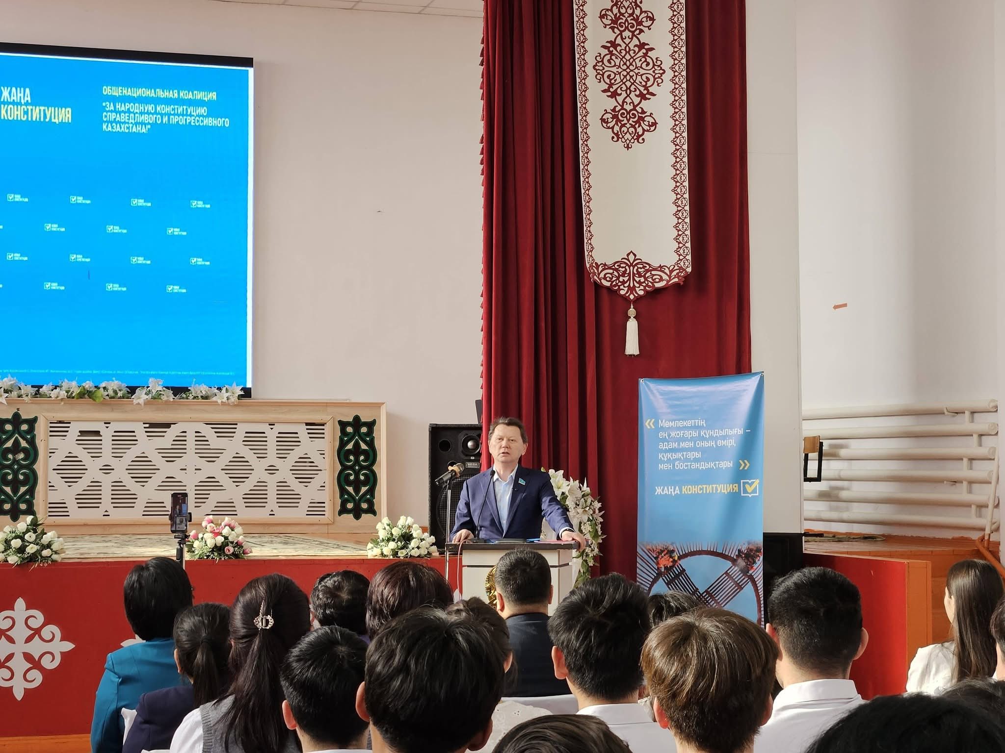 Жалпыұлттық коалиция мүшесі, мәжіліс депутаты Мархабат Жайымбетов кездесу барысында жастардың ел болашағын айқындайтын негізгі күш екенін атап өтті. Ол жаңа Конституция жобасында жастардың құқықтары мен мүмкіндіктерін кеңейтуге ерекше мән берілгенін жеткізді. Спикердің айтуынша, Ата Заң жобасы жастардың сапалы білім алуына, еңбек етуіне, кәсіпкерлікпен айналысуына және қоғамдық-саяси үдерістерге белсенді қатысуына конституциялық негіз қалыптастырады. Сонымен қатар, жастардың бастамаларын қолдау, олардың әлеуетін дамыту және мемлекеттік шешімдер қабылдау процесіне тарту – басты басымдықтардың бірі екені айтылды.