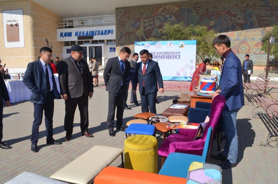 Жәрмеңкеге келушілерге жас кәсіпкерлердің сүттен жасалған тағамдары, кондитерлік өнімдері, жиһаз түрлері, кофе дайындау әдісі, қолөнер бұйымдары мен балық өнімдері таныстырылды.