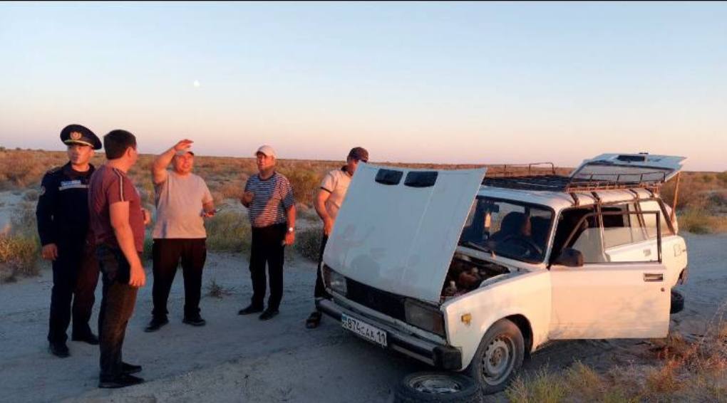 Ағымдағы жылдың 9 тамызы күні 18 сағат 20 минутта Арал ауданы, Кіші Теңізге қарай бағыт алған жеңіл автокөліктің артқы дөңгелегі ұшып кетіп, екі адам жолда қалып қойғандығы жөнінде Арал ауданы №3 мамандандырылған өрт сөндіру бөлімінің байланыс бекетіне Нұр-Сұлтан қаласының тұрғыны хабарлама берді.